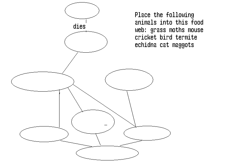Hint: You should have one producer, three herbivores, three detritivores, three carnivores. In the links section there is an Australian site which lets you build your own food web. You’ll find it in the Activities section. Check your answers there!
