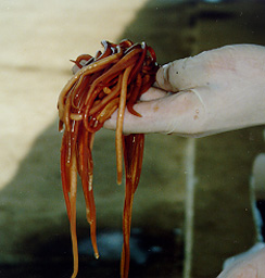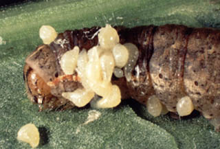 Parasitoidism occurs when an insect lays its eggs on a host for it’s larvae to consume. The larvae, normally from a fly or wasp species, gain in this instance often killing the host. The caterpillar shown is infected with wasp larvae. Some parasitoids have been used as a biological control mechanism. |